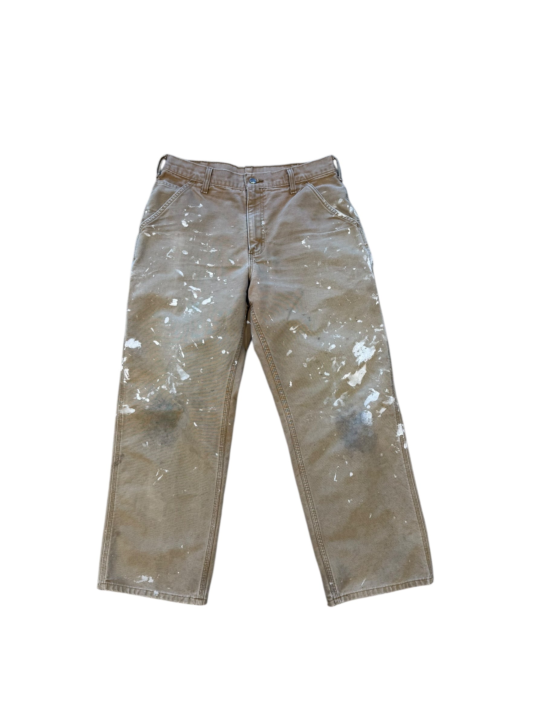00s Carhartt Tan Paint Splatter Carpenter Pants Sz 34 Waist