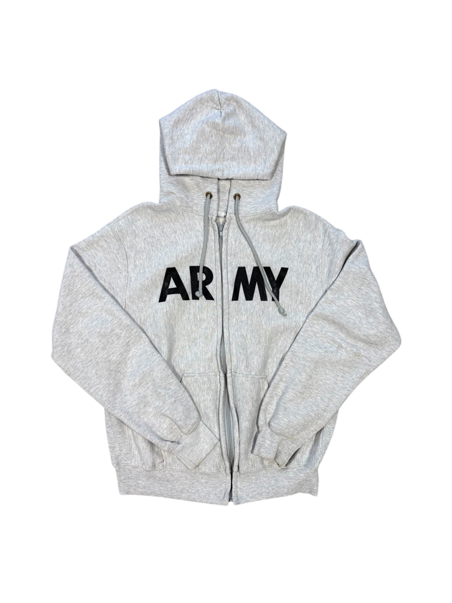 90s Army Grey Zip Up Hoodie Sz L