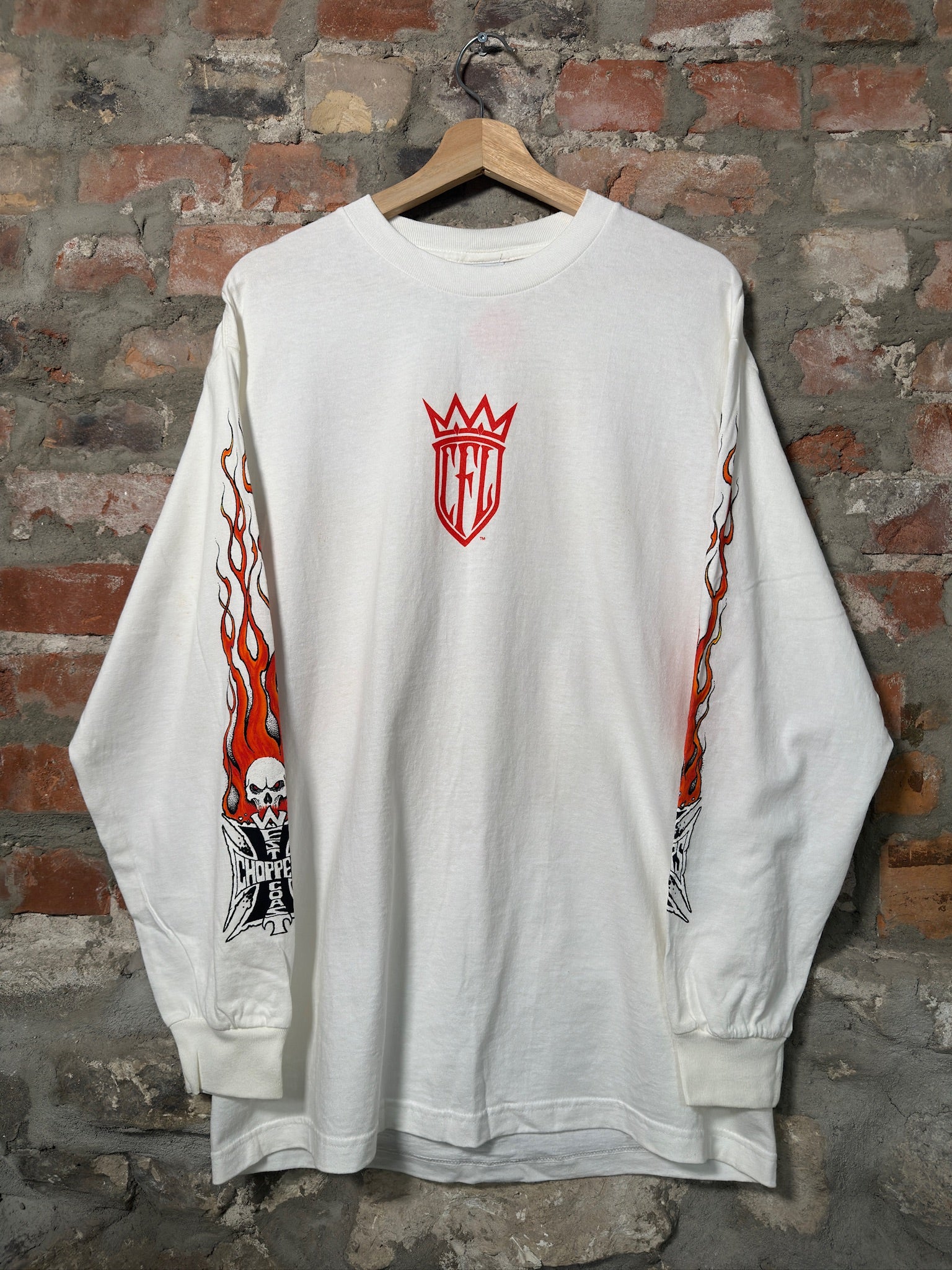 90s West Coast Choppers Flames White Long Sleeve Sz L