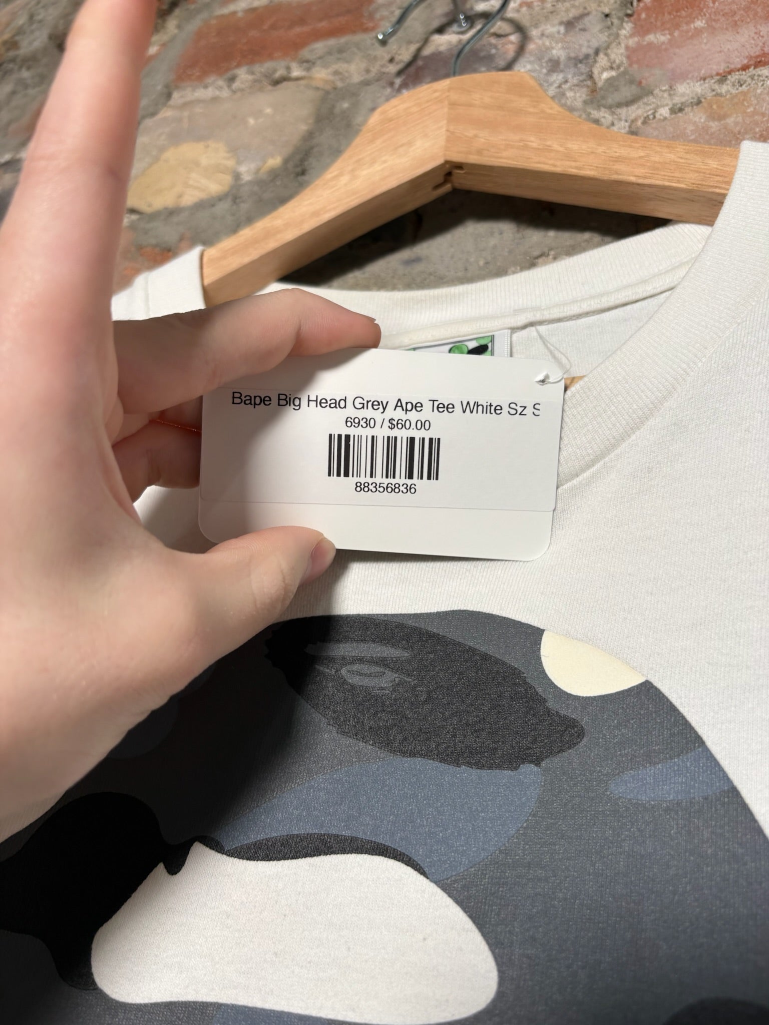 Bape Big Head Grey Ape Tee White Sz S