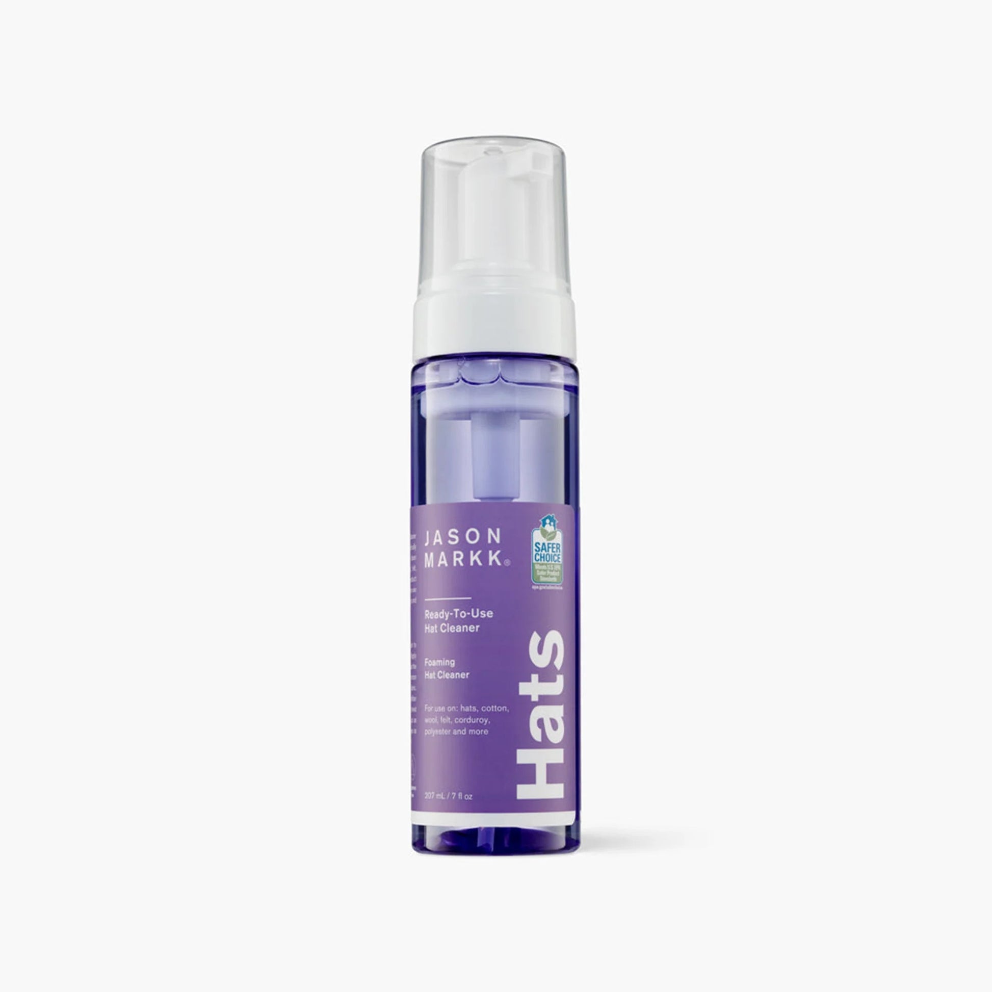 Stay clean from head to toe. The Jason Markk 7oz Ready-To-Use Hat Cleaner is a fragrance-free solution specifically formulated to gently, yet effectively clean hat materials. This gentle new formula is safe to use on cotton, wool, felt, corduroy, polyester and more. Designed for quick and easy care, our Ready-To-Use Hat Cleaner dispenses the perfect ratio of solution to water for the most effective clean every single time.