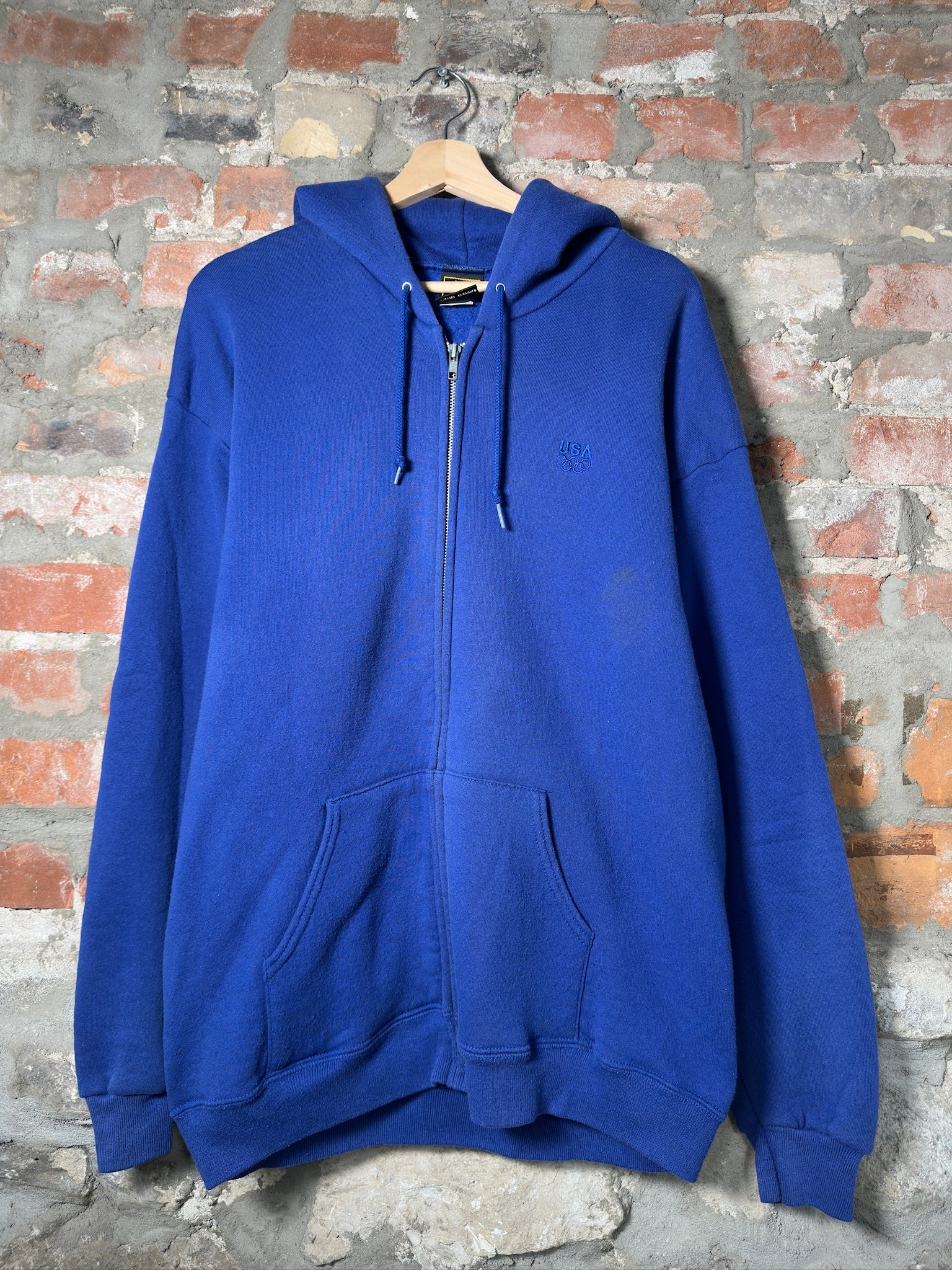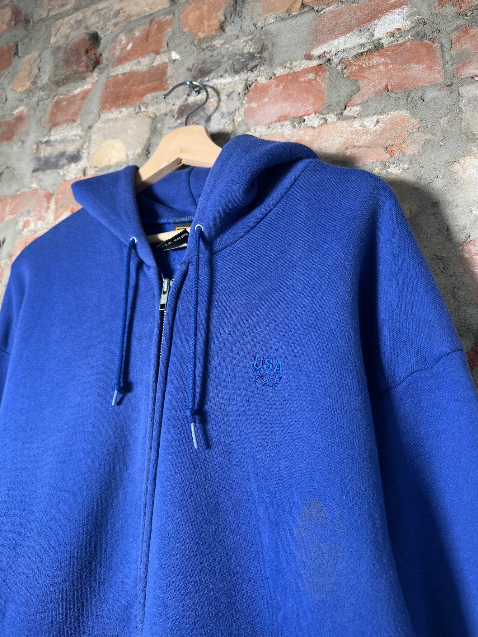 Vtg USA Olmpics Blue Zip-Up Hoodie Sz L